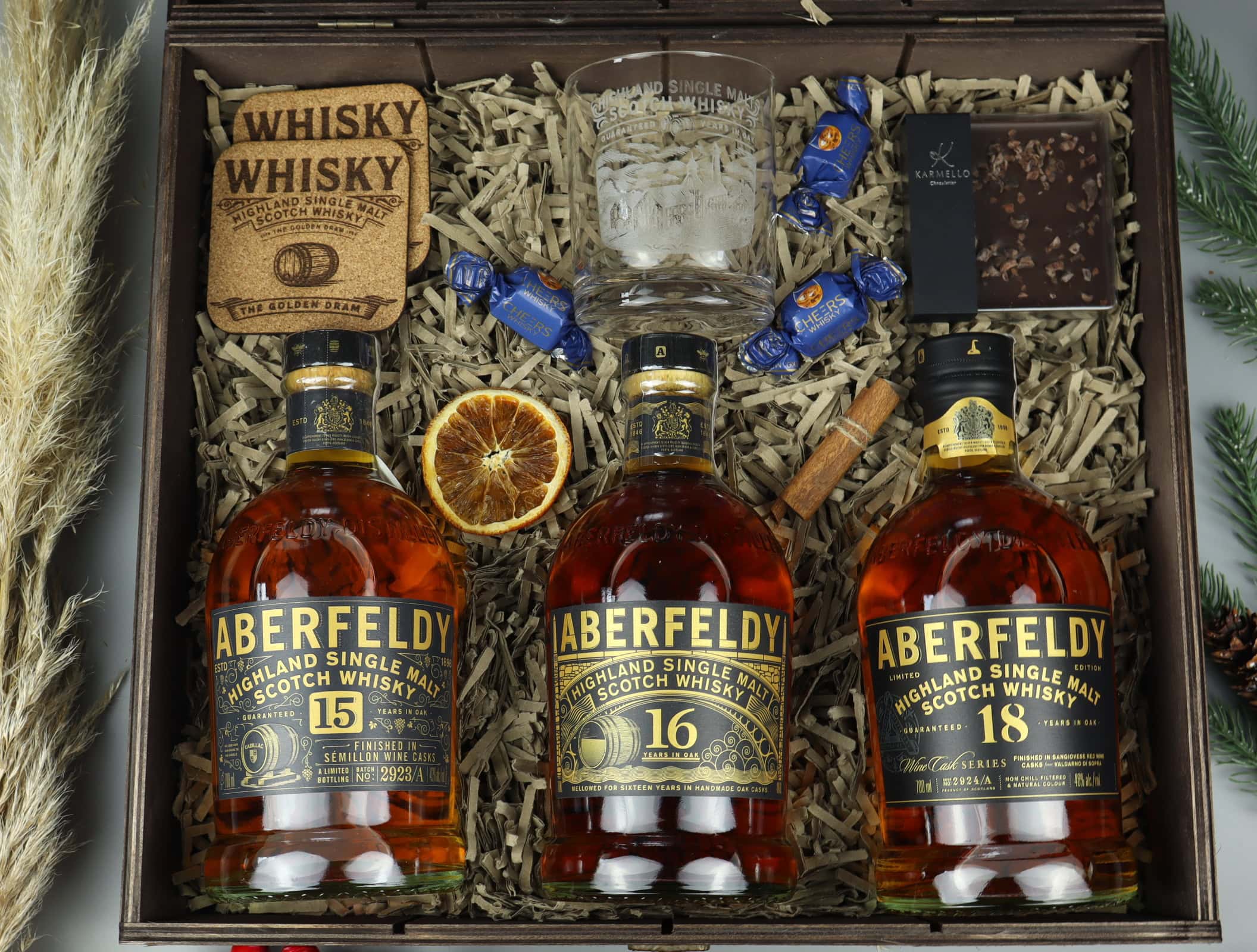 - Idealna degustacja: Podaruj unikalne doświadczenie, które pozwoli porównać smaki trzech różnych edycji whisky Aberfeldy.