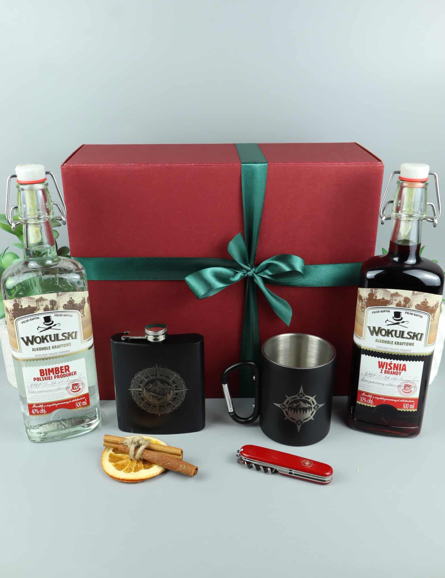 Nasz zestaw to rozbudowana, efektowna propozycja dla osób kochających góry, biwaki i outdoorowy styl. Połączenie dwóch kraftowych alkoholi Wokulski, praktycznych akcesoriów z grawerem oraz eleganckiego pudełka prezentowego tworzy mocny, uniwersalny prezent premium, który idealnie wpisuje się w klimat górskich wypraw i kolekcjonowania Korony Gór Polskich.