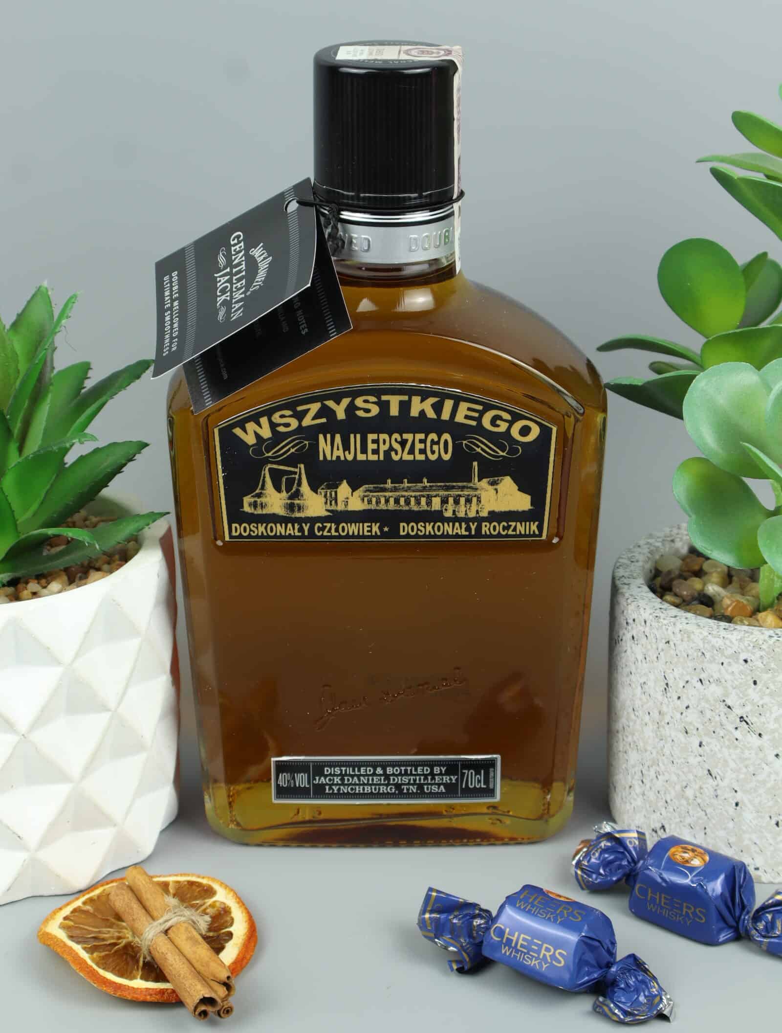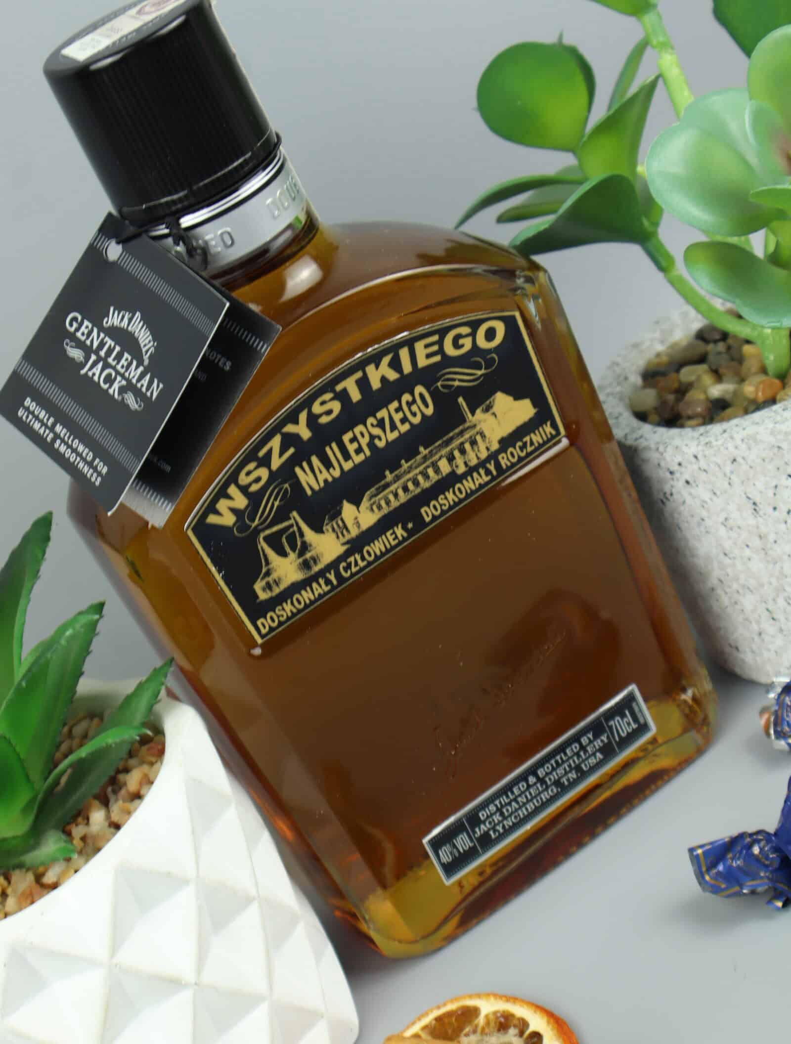 Gentleman Jack 0,7l z etykietą „Wszystkiego Najlepszego” – elegancki prezent jubileuszowy