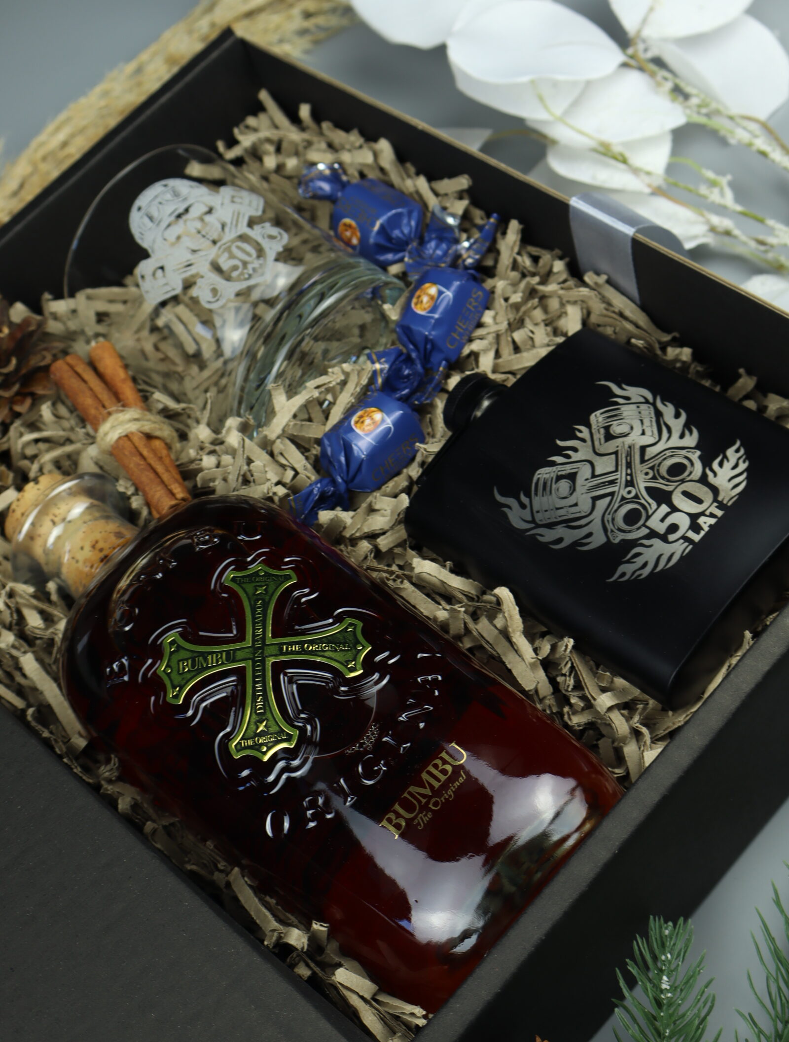 Bumbu Rum to wysokiej jakości rum produkowany na Barbadosie, inspirowany recepturami z XVII wieku. Charakteryzuje się bogatym aromatem wanilii, karmelu, przypraw korzennych oraz dojrzałych owoców. Jego łagodny i słodkawy profil sprawia, że świetnie smakuje zarówno solo, jak i w koktajlach. Całość zapakowana jest w elegancką czarną skrzynkę z efektownym grawerem, która podkreśla charakter prezentu.