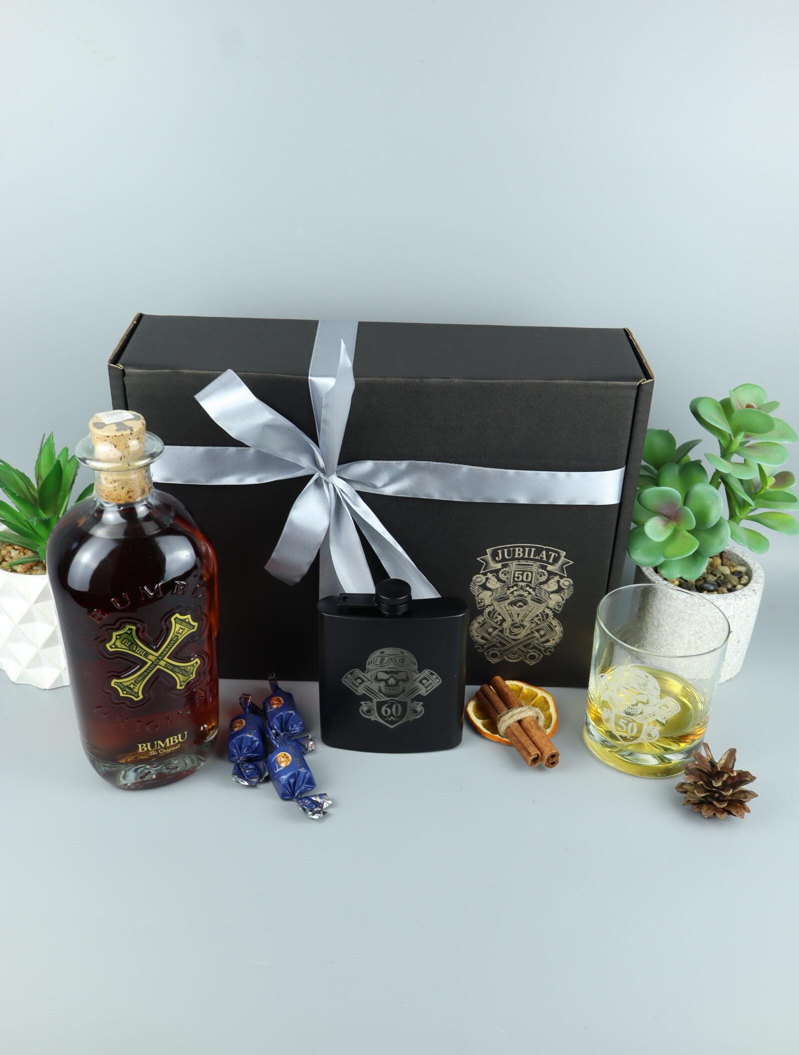 • Atrybuty w trasę: Grawerowana szklanka na wieczorny relaks oraz matowa, czarna piersiówka – nieodłączny talizman każdego motocyklisty.