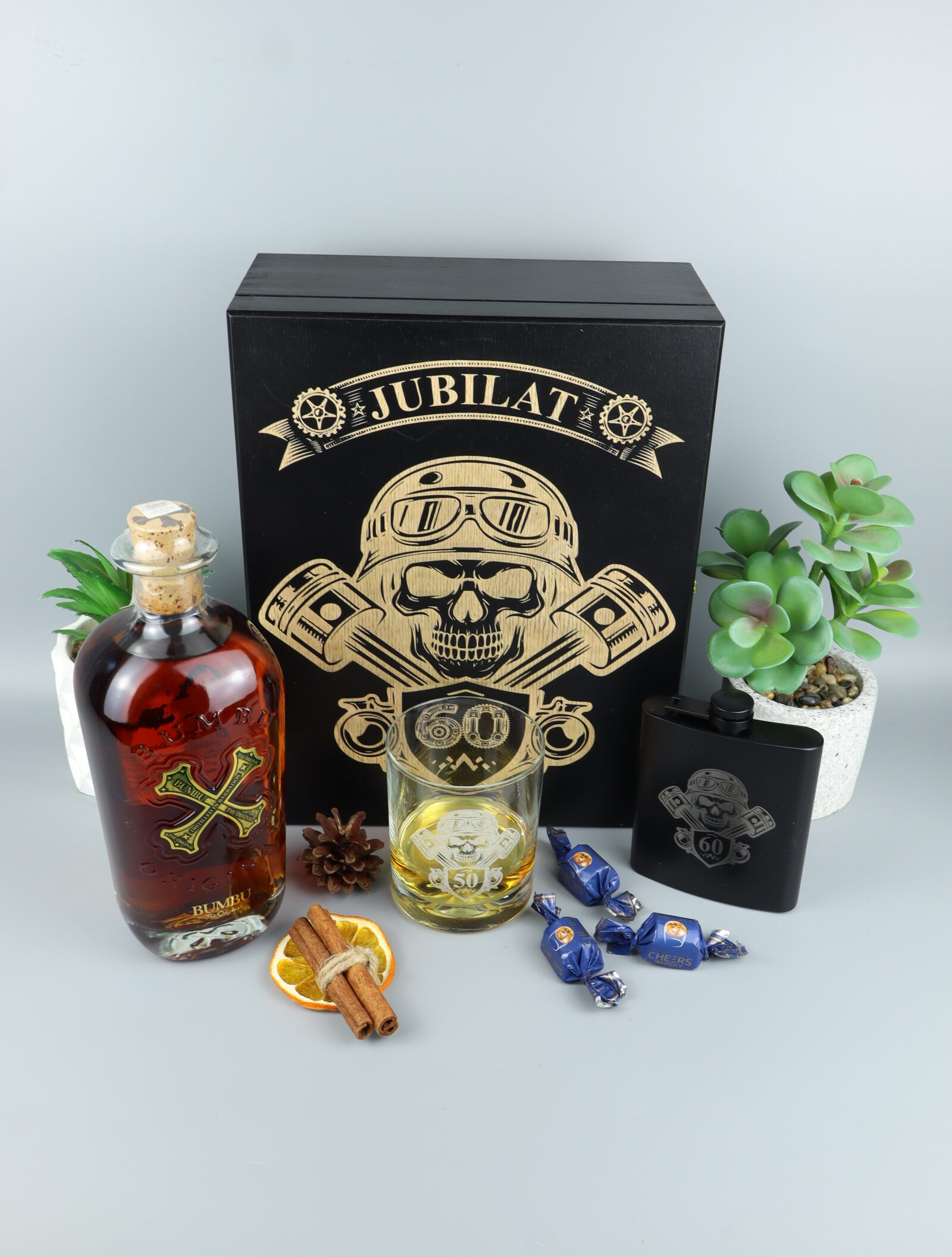 Nasz Zestaw prezentowy dla motocyklisty z Bumbu Rum to wyjątkowa propozycja dla miłośników rumu oraz motoryzacyjnego stylu. Elegancka drewniana skrzynka z grawerem w motocyklowym klimacie, stylowa szklanka do rumu z grawerem oraz piersiówka z grawerem tworzą zestaw, który doskonale sprawdzi się jako prezent na jubileusz, urodziny lub wyjątkowy upominek dla fana motocykli.