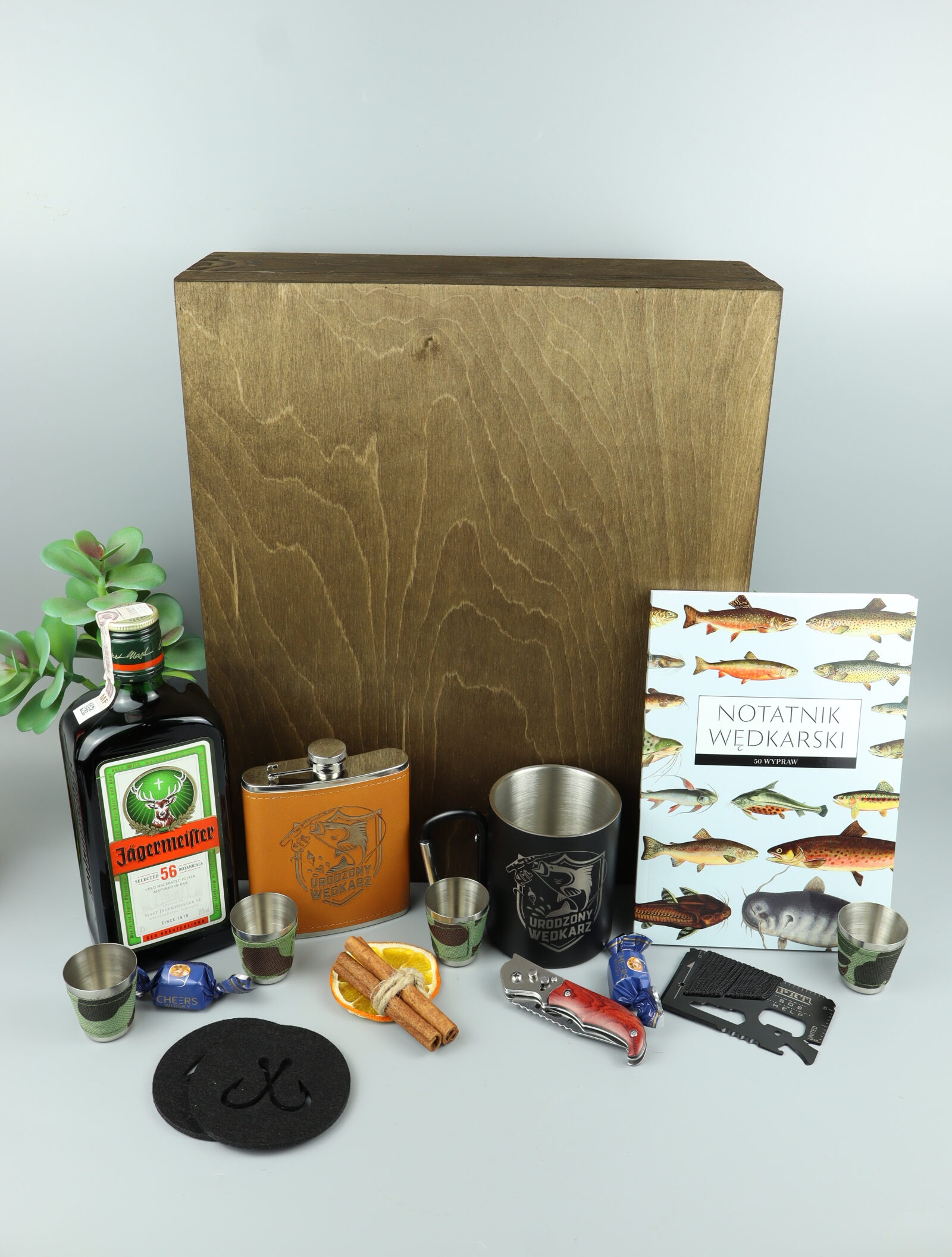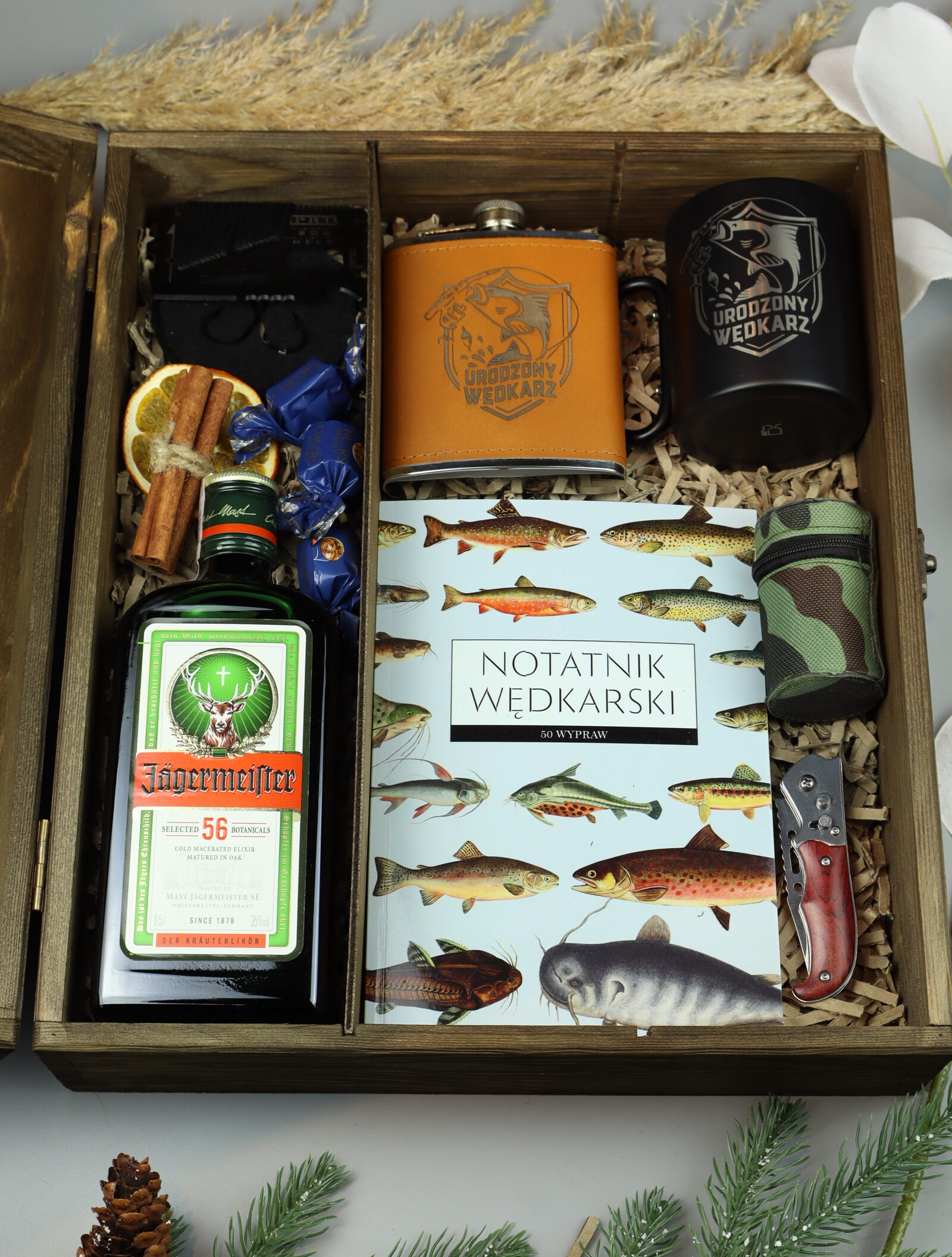 Nasz zestaw prezentowy dla wędkarza z Jägermeister to oryginalna propozycja dla osób, które kochają spędzać czas nad wodą. Połączenie charakterystycznego likieru ziołowego Jägermeister, praktycznych akcesoriów oraz dodatków inspirowanych pasją wędkarską tworzy kompletny zestaw prezentowy dla każdego wędkarza.