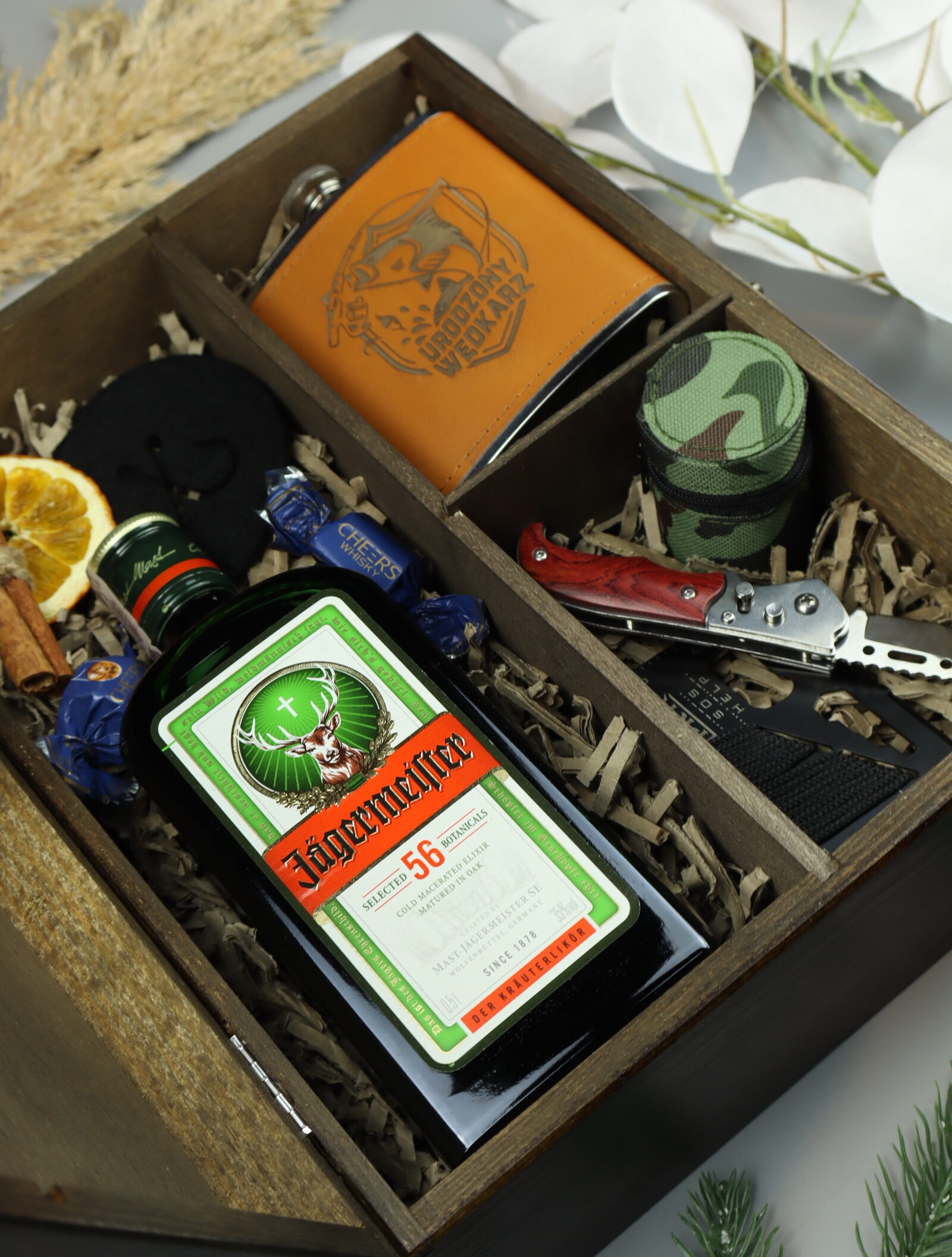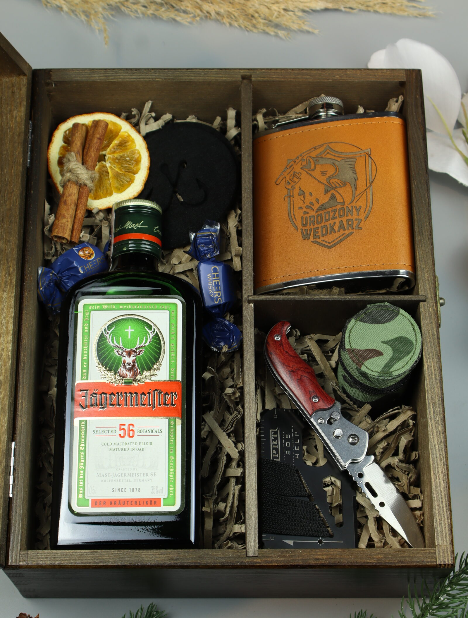 Zestaw prezentowy dla wędkarza z Jägermeister – personalizowana skrzynka z grawerem