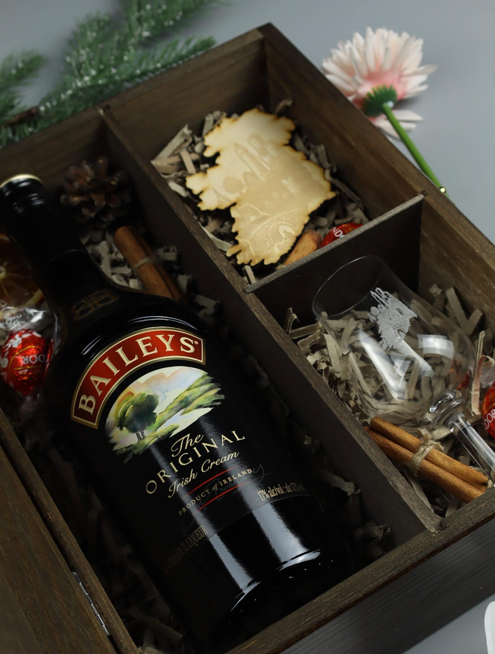Zestaw Baileys „Pozdrowienia z Irlandii” to elegancki upominek, który łączy w sobie smak irlandzkiego likieru, kunszt wykonania i ciepły klimat Zielonej Wyspy. Idealny prezent dla miłośników słodkich trunków i wyjątkowych zestawów. Całość zapakowana w ozdobne, drewniane pudełko z grawerowanym motywem irlandzkich krajobrazów.