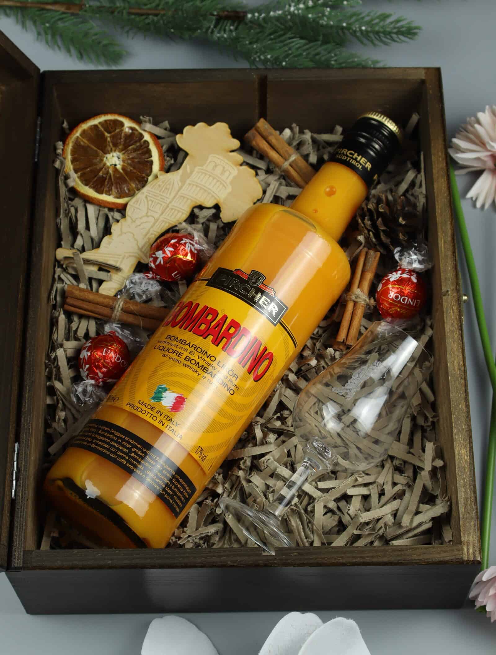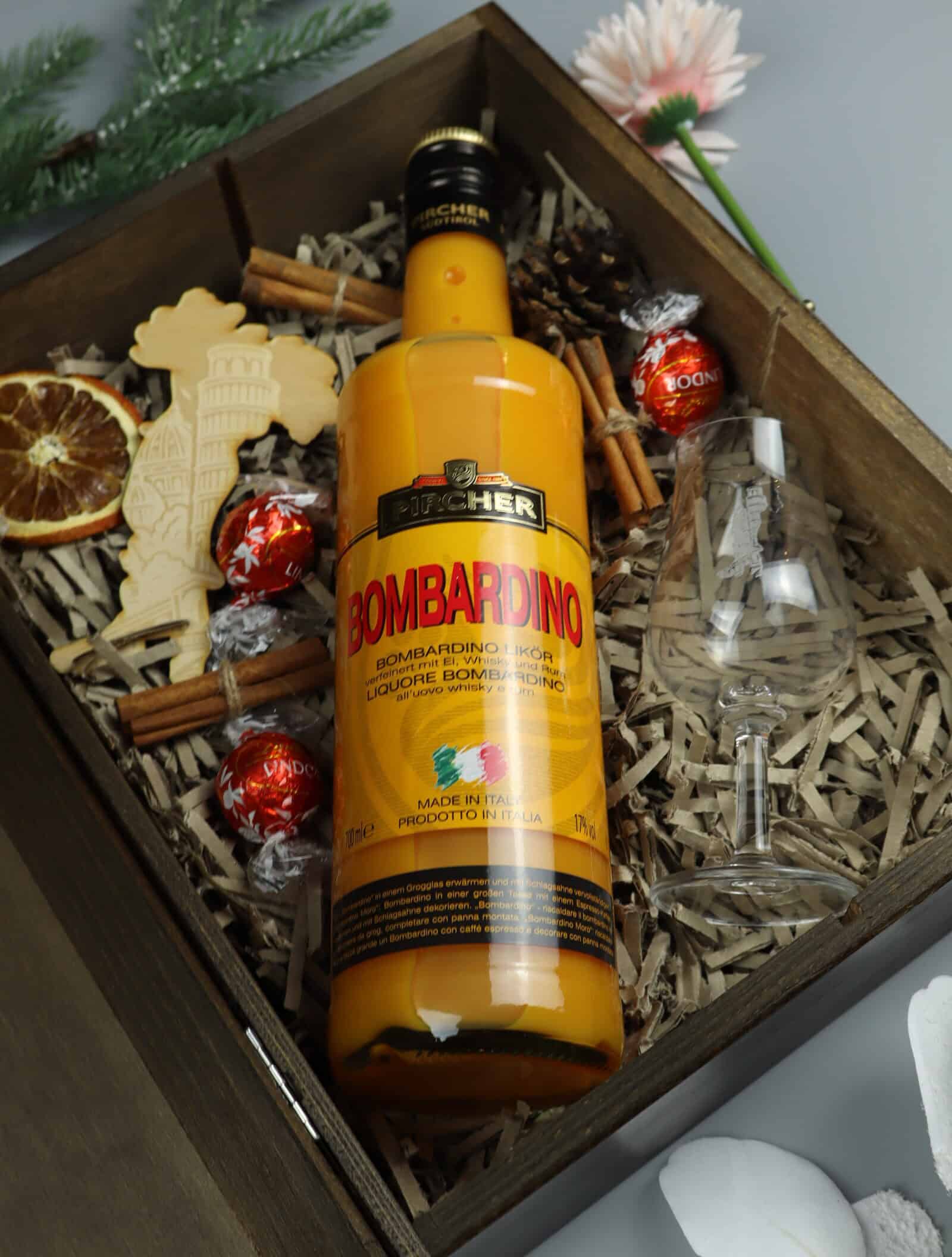 Zestaw Bombardino „Pozdrowienia z Włoch” – włoski likier w eleganckiej skrzynce z grawerem