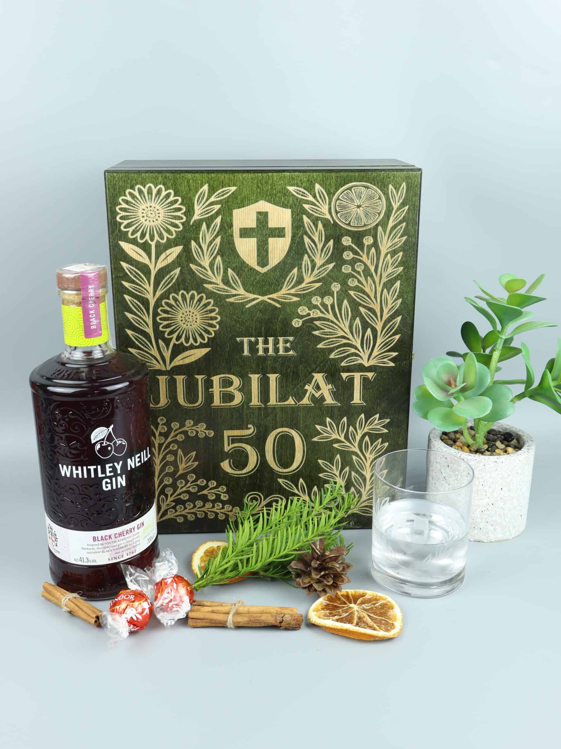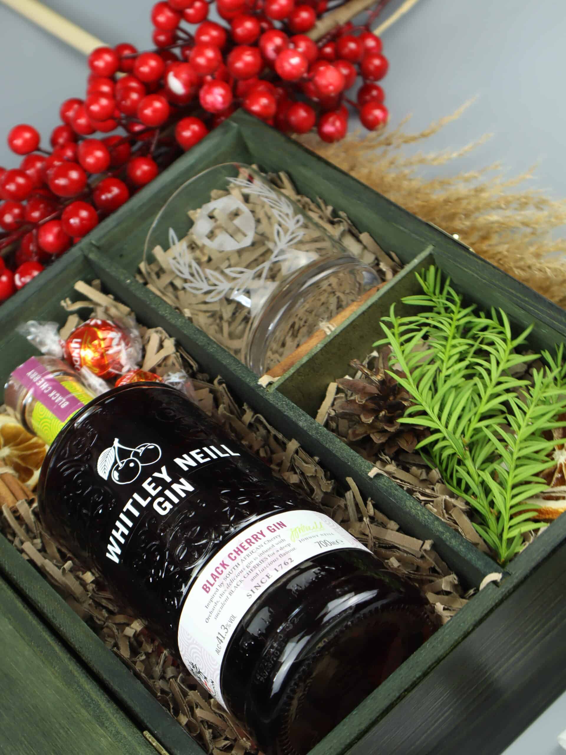 Luksusowy zestaw prezentowy z ginem Whitley Neill Black Cherry w personalizowanej skrzynce „The Jubilat” – na urodziny i inne wyjątkowe okazje