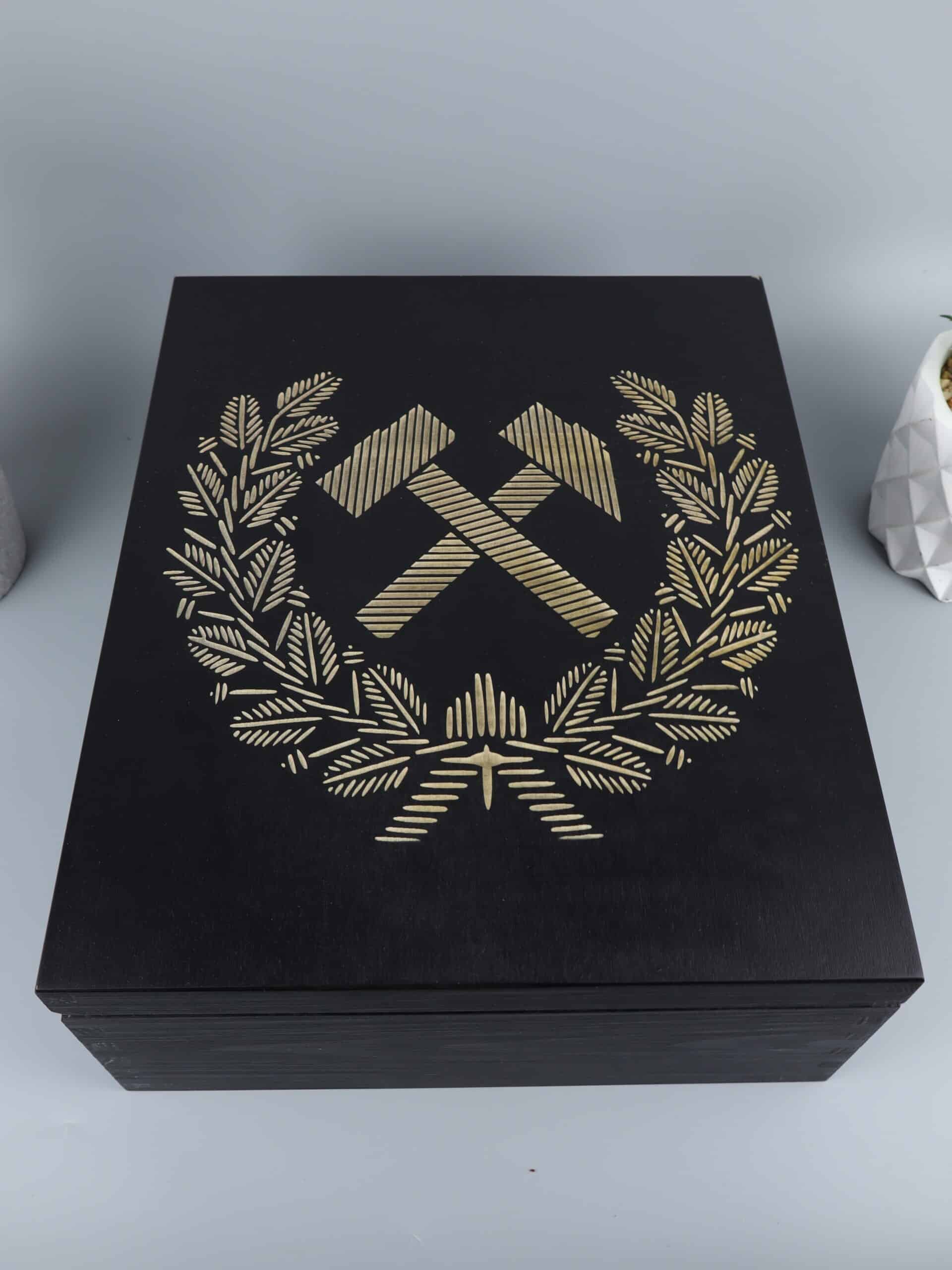 - Elegancką drewnianą skrzynkę z grawerem– Zestaw zapakowany w stylową, drewnianą skrzynkę, które podkreśla luksusowy charakter upominku.